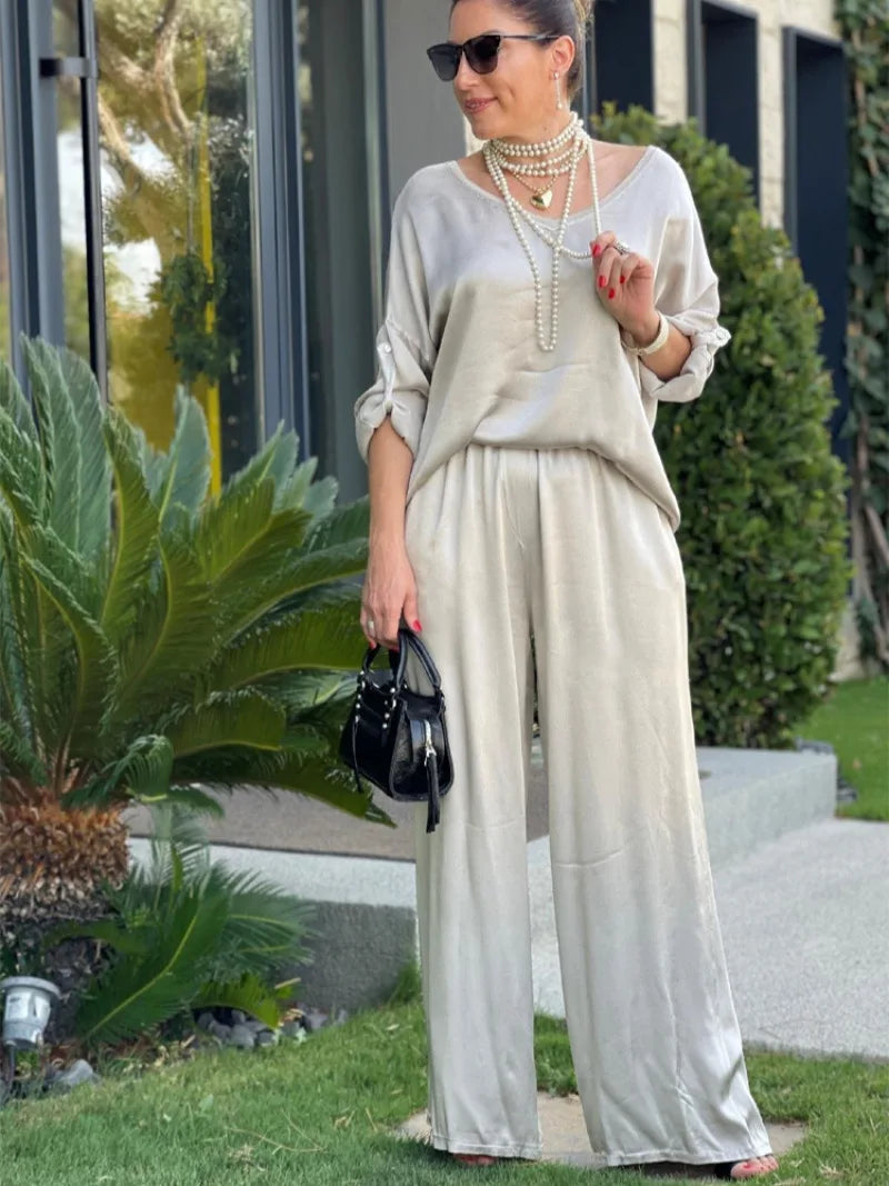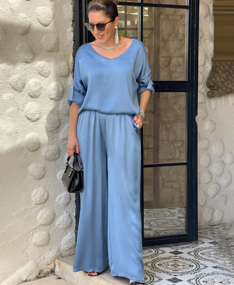 As peças são fluidas e elegantes permitindo compor outros looks combinando a calça ou camisa com outras peças.
