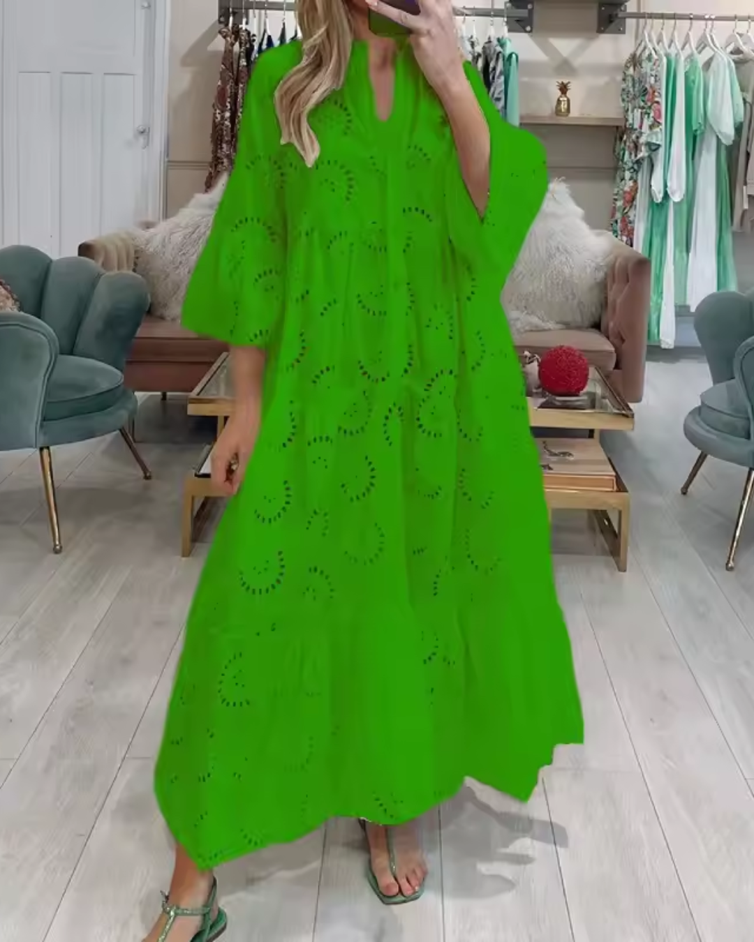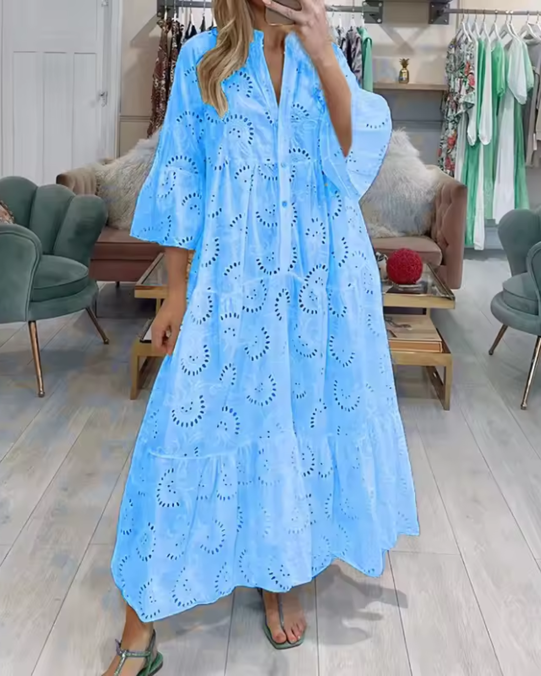 • Modelo: Vestido Longo com Bordado Esther elegante para a primavera/verão. Lindo, versátil e valoriza seu corpo sem marcar!